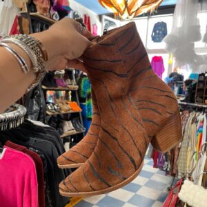 AMAZING! MADE IN BRAZIL SUEDE TIGER STRIPED POINTED BOOTIES