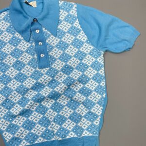 1960S DOUBLE KNIT COLLARED POLO SHIRT DIAMOND 2-TONED ARGYLE DESIGN