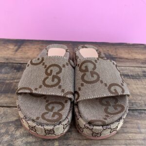 2-TONE GUCCI MONOGRAM PLATFORM SLIDE SANDALS