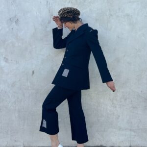 SPLIT SHOULDER EMBROIDERED SQUARE DETAIL TWO PIECE SUIT