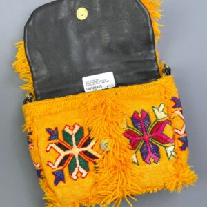 *AS-IS* FUN! EMBROIDERED TEXTILE SHOULDER BAG, LEATHER INTERIOR, SNAKE CHAIN STRAP
