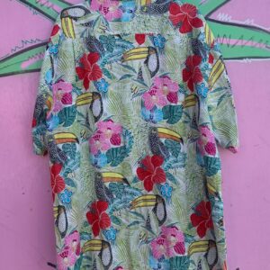 GORGEOUS! COLORFUL TROPICAL TOUCAN PRINT LINEN HAWAIIAN SHIRT