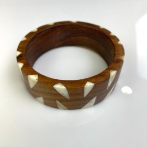 SUPER COOL! WOOD & SHELL INLAY BANGLE BRACELET