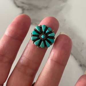 925 TURQUOISE INLAY FLOWER DESIGN RING – STERLING SILVER