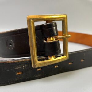 SIMPLE POLISHED BLACK LEATHER BELT EMBOSSED EDGE, SQUARE BRASS BUCKLE