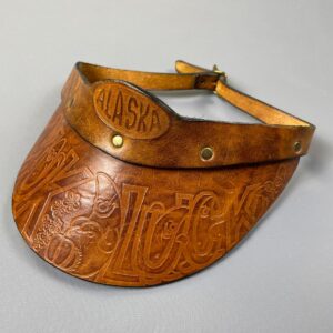FUN EMBOSSED LEATHER VISOR BRASS BUCKLE CLOSURE- ALASKA