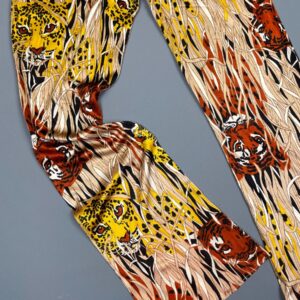 RETRO ALLOVER WILD SAFARI & TIGER PRINTED FLARED PANTS ELASTIC WAIST
