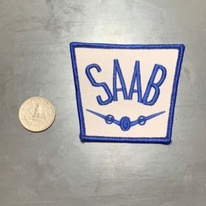 VINTAGE SAAB LOGO TRAPEZOID SHAPED EMBROIDERED PATCH