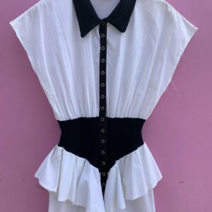 *AS-IS* ADORABLE! 1980S COTTON FULLY BUTTON FRONT PEPLUM DRESS RIBBED COTTON DETAILS
