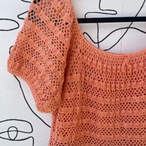 AS-IS PEACHY CROCHET OFF-SHOULDER TOP