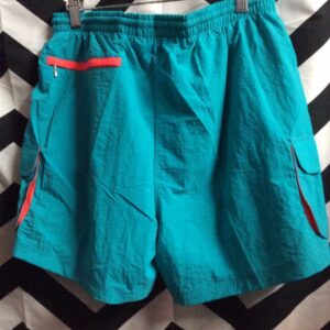 1990’S SHORTS – COTTON – ELASTIC WAIST – SOLID COLOR W/NEON TRIM