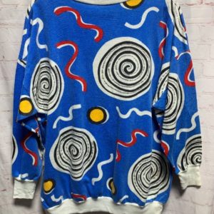1980s CREWNECK PULLOVER SPIRAL SWIRLS METALLIC PRINT NEW ORLEANS
