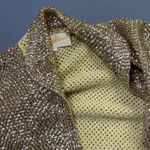 STUNNING! 1960S FULLY GOLD SEQUINED & BEADED OPEN KNIT CARDIGAN SWEATER
