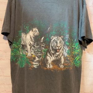 1980’S WHITE TIGERS JUNGLE SCENE T-SHIRT SOFTY FADED & SINGLE STITCH