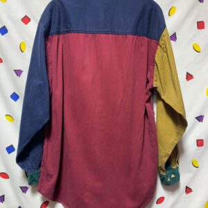 100% SILK COLOR BLOCK LONG SLEEVE BUTTON UP BLOUSE – AS IS