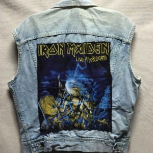 LEE DENIM PUNK VEST WITH IRON MAIDEN BACK PATCH AND MEGADETH FRONT PATCH AS-IS