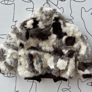 ADORABLE PATCHWORK COFFEE & CREME RABBIT FUR CHILDREN\S BOMBER JACKET