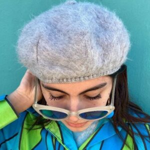 100% WOOL ADORABLE COLORFUL STRIPED BERET HAT WITH POM POM ACCENT
