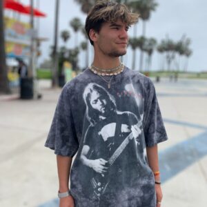 DAVID GILMOUR PINK FLOYD GUITARIST SINGLE STITCH TIE DYE T SHIRT LIQUID BLUE AS-IS