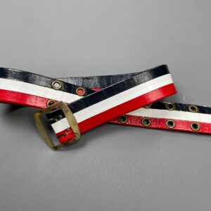 CUTE!!! RED WHITE & BLUE STRIPED VINYL BELT, BRASS BUCKLE