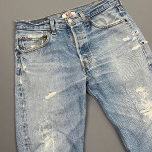 PERFECTLY TATTERED LEVIS 501XX CLASSIC WASH DENIM JEANS