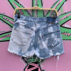 *AS IS* BLEACH SPLATTER RED TAB PERFECTLY FRAYED & TATTERED CUT OFF SHORTS