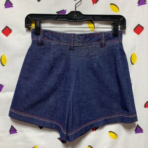 HIGH WAIST RETRO STRETCH DENIM SHORTS FRONT POCKETS CONTRAST STITCHING