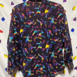 AMAZING 1990S FUNKY DANCING FIGURES BUTTON UP COTTON SHIRT