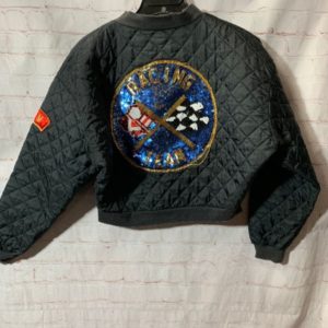 QUILTED CROPPED BOMBER JACKET SEQUIN RACING TEAM PATCH