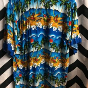 HAWAIIAN SHIRT RAYON SURFBOARD PALM PRINT
