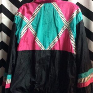 WINDBREAKER JACKET – ZIP-UP – HORIZONTAL STRIPE – MOZAIC PRINT DESIGN FULL BACK