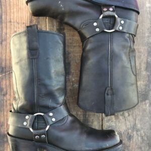 CLASSIC SQUARE TOE LEATHER MOTORCYCLE RIDING BOOTS WITH HARNESS O RING DETAIL
