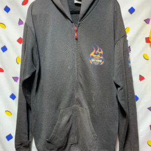 *DISTRESSED* OVERSIZED HARLEY DAVIDSON ZIP-UP HOODIE FLAMES ON SLEEVES GENGRAS HARTFORD CONNECTICUT AS-IS