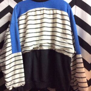 STARTING POINT JACKET – ZIP-UP – HORIZONTAL STRIPE PRINT – COLOR BLOCK DESIGN – SOLID STRIP ACROSS SHOULDERS – SOLID COLLAR & LOWER HALF
