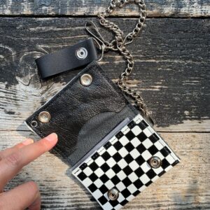 RUDE BOY 2 TONE CHECKERED PATTERN LEATHER CHAIN WALLET