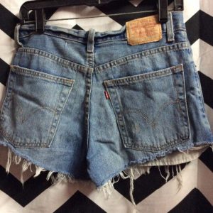 LEVIS DENIM SHORTS – CUTOFF – 550 – RED TAB – SUPER SHORT SHORTS – ACID WASHED – FRAYED WAIST – FOLDED HEM