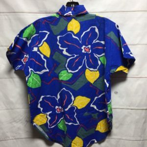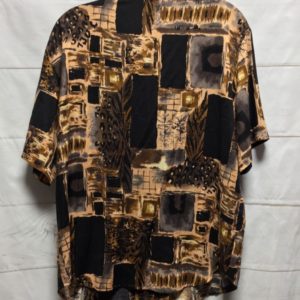 1980S COTTON FUNKY PRINT SHORT SLEEVE BUTTON UP BLOUSE