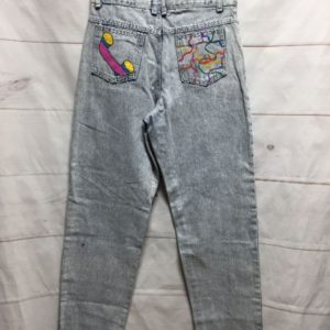 FUNKY HIGH WAISTED JEANS WITH HAND-PAINTED TELEPHONE DESIGN – AS IS