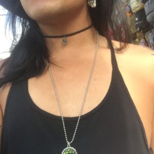 BALL CHAIN NECKLACE W/ FUNKY RETRO BUTTON PENDANT