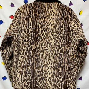 ADORABLE FUZZY QUILTED LINING CHEETAH PRINT ZIP UP JACKET FUN INTERIOR POCKETS AS-IS