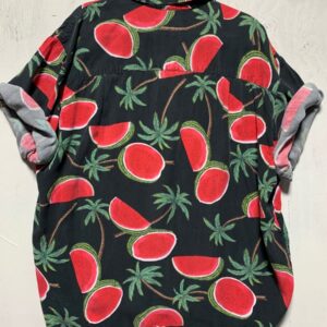 TROPICAL HAWAIIAN SILK SHIRT WITH WATERMELON AND PALM TREE ALL OVER DESIGN