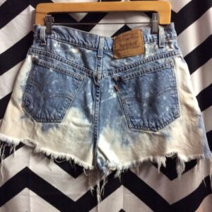 LEVIS DENIM SHORTS – CUTOFF – ORANGE TAB – ZIP-FLY – BLEACH STAINS – HEAVY FRAY
