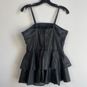 AMAZING! 1980S GENUINE LEATHER LAYERED RUFFLE PEPLUM TOP