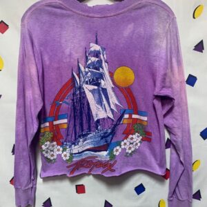DISTRESSED CROPPED BLEACHED TIE-DYE TROPICAL GRAPHIC LONG SLEEVE TEE