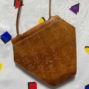 GEOMETRIC SHAPED LEATHER PURSE WITH EMBOSSED CHINESE CHARACTERS