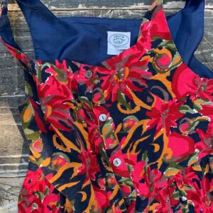 FUN 90S SLEEVELESS CORDUROY FLORAL JUMPSUIT WITH BUTTON UP BODICE AND ROOMY PANT-LEGS