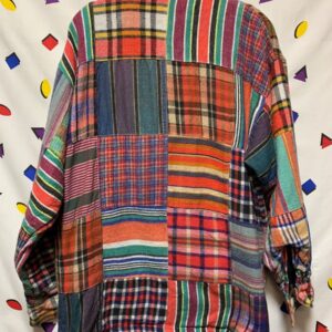 FUNKY MADRAS PLAID MULTI PRINT PATCHWORK ZIPUP COTTON JACKET SIDE POCKETS