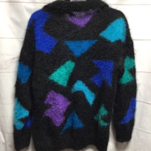 RADICAL 1980S GEOMETRIC DESIGN FUZZY MOHAIR THREE BUTTON SWEATER
