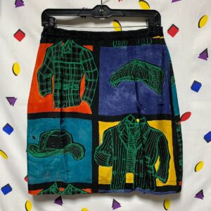 VINTAGE COLOR BLOCK RAD CLOTHING ILLUSTRATION PRINT SKIRT