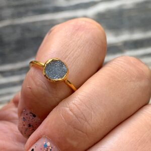 MIDNIGHT BLACK DRUZY SMALL GOLD PLATED NATURAL CRYSTAL STONE DRUZY QUARTZ MIDI RING SIZE 5